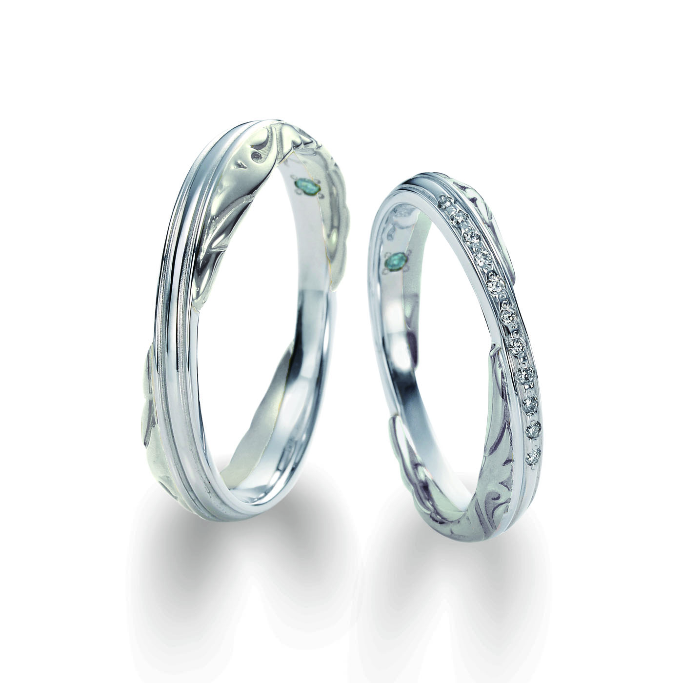 マロニエ並木を背景に、穏やかに流れるサン・マルタン運河にはアーチ状の美しい鉄製の歩道橋がゆらりと写りこむ。輝く水の流れを表現したゴールドをベースに、それを渡るアーチ状のプラチナリングは途切れることのない二人の愛をイメージして。